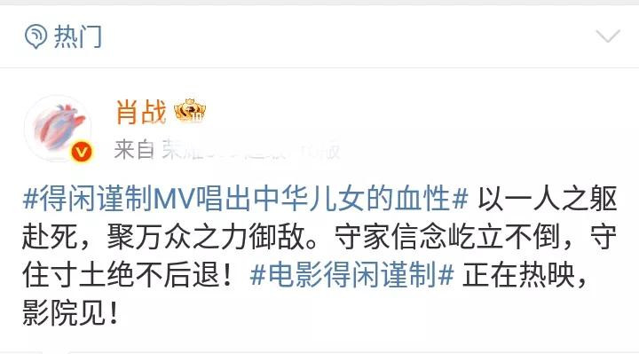 家与国,团圆与幸福,爱国爱家,诊疗和平,爱好人命,成为不雅众心目中激发共识的话题场合!艺东谈主肖战出演,可谓是好极了!因为电影《得闲谨制》的同名主题曲,恰是肖战演唱!